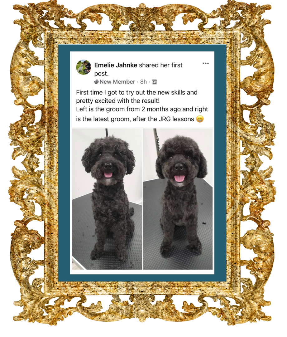 When you finish Just Starting Out, we’ll send you a super cutie official certificate to show the world you’ve leveled up your grooming skills the JRG way (even though the gorgeous dogs you create will be proof enough!).